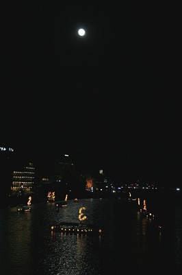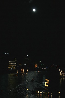 夜、暗い川に浮かんだこよみは