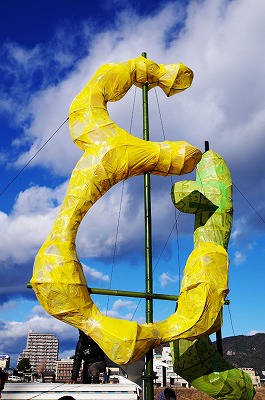 指でつつけば破れてしまう巨大な行燈は
